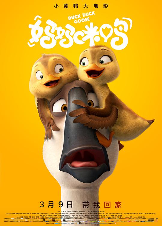 小黄鸭大电影《妈妈咪鸭》讲述了雁群往南方迁徙的途中,“最棒飞行家”大鹏桀骜不驯爱捣乱,和他的女友晶晶调情时不慎撞散了一群赶路的小鸭子。不服管教的大鹏决定单飞,不得已和两只落单的小鸭子淘淘、憇憇组成了“...
